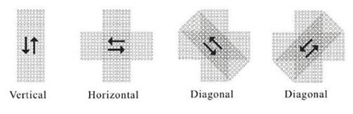 3) Den Roller nicht mehr als vier Mal in vier Richtungen bewegen (auf der Hautstelle, auf der eine Behandlung erforderlich ist). Siehe Diagramm unten.